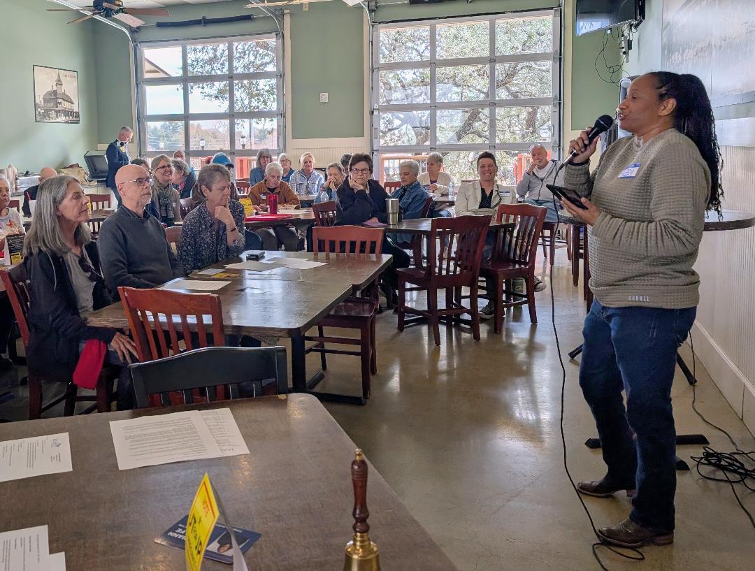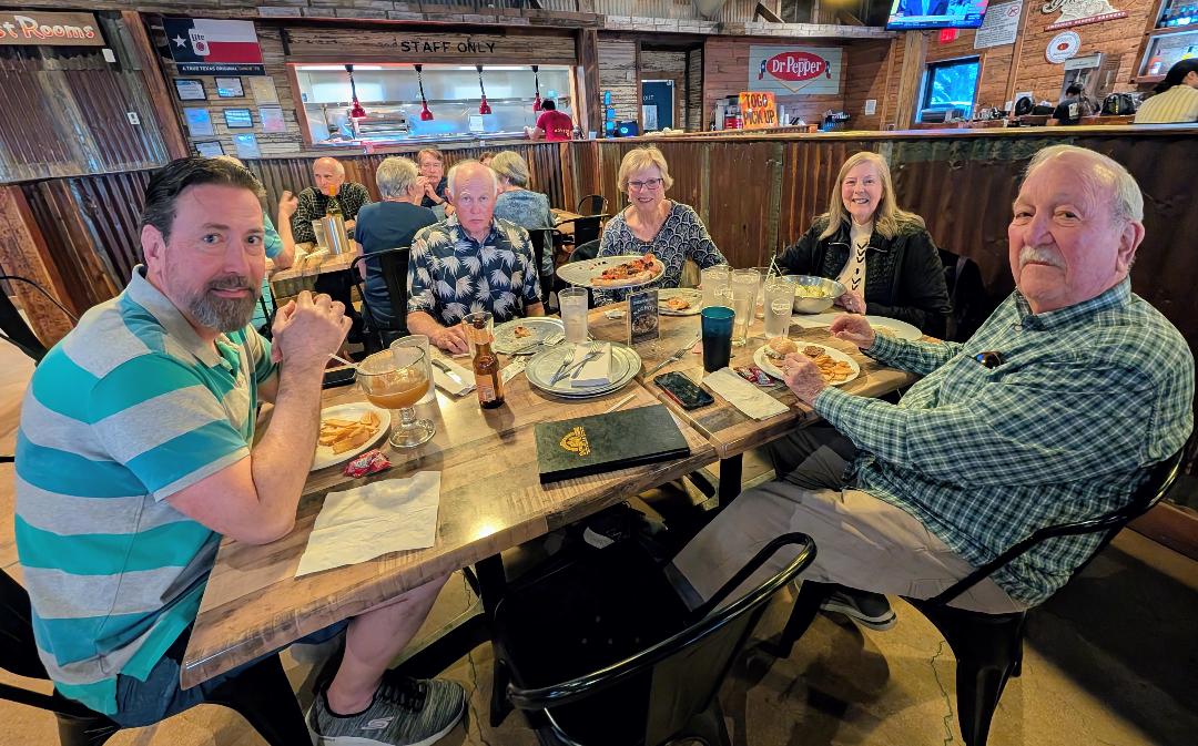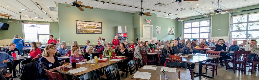 If you arrive at or after 5:30 p.m., you can place an order at the counter and let the cafe staff know that you will be upstairs; they may bring your food to you - otherwise you will need to go downstairs to pick it up. You can also phone in an order ahead of time by calling 830-331-4011. Note that the counter line to order can get long, so please arrive early, as the meeting will begin at 6:00 p.m.