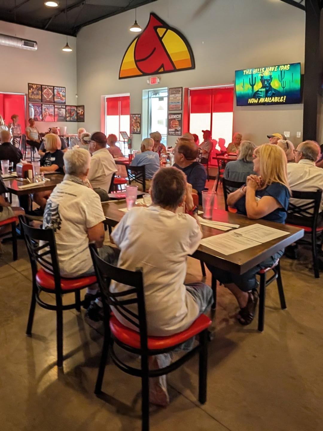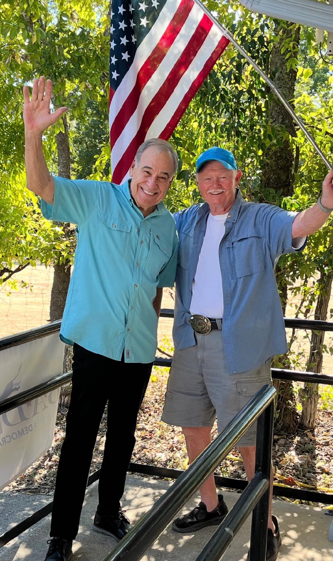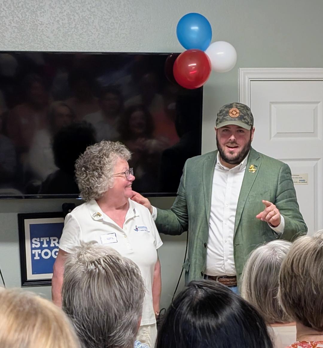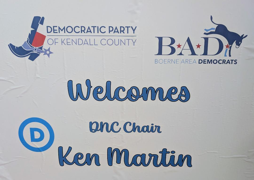 Democratic National Party Chair Ken Martin (pictured on left) came to Boerne! He brought his staff and also in attendance were Kendall Scudder, the Texas Democratic Party Chair (pictured on right), and his staff. There were lots of great refreshments (provided by TDP), and standing room only (50-60 people) to hear Chair Martin speak to the group.