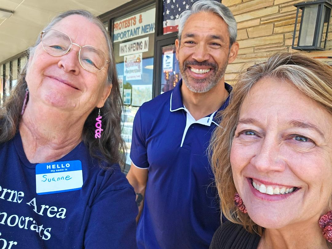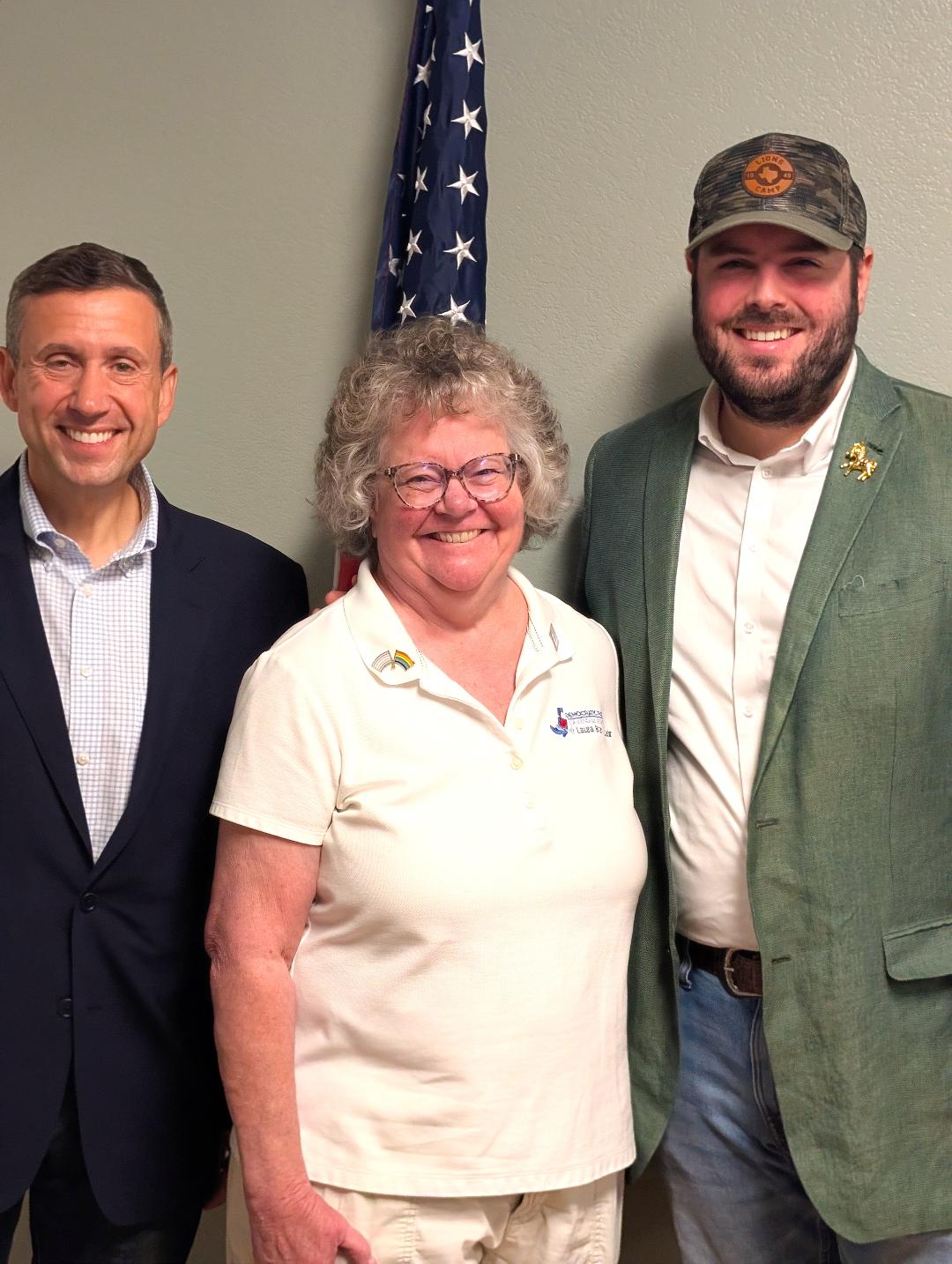 | | | Suanne Pyle (left) and Jane Brown (right) met "soon-to-be-candidate-for-something" Ron Nirenberg (center) at a recent event in Bexar County. Jane said, "I was geeking out!" | | | |