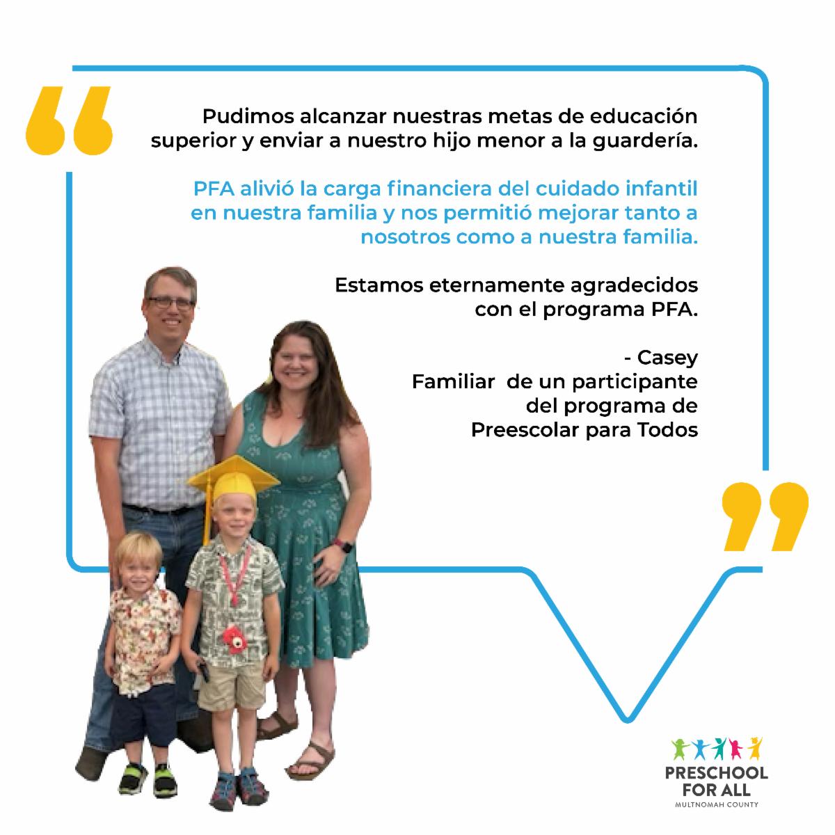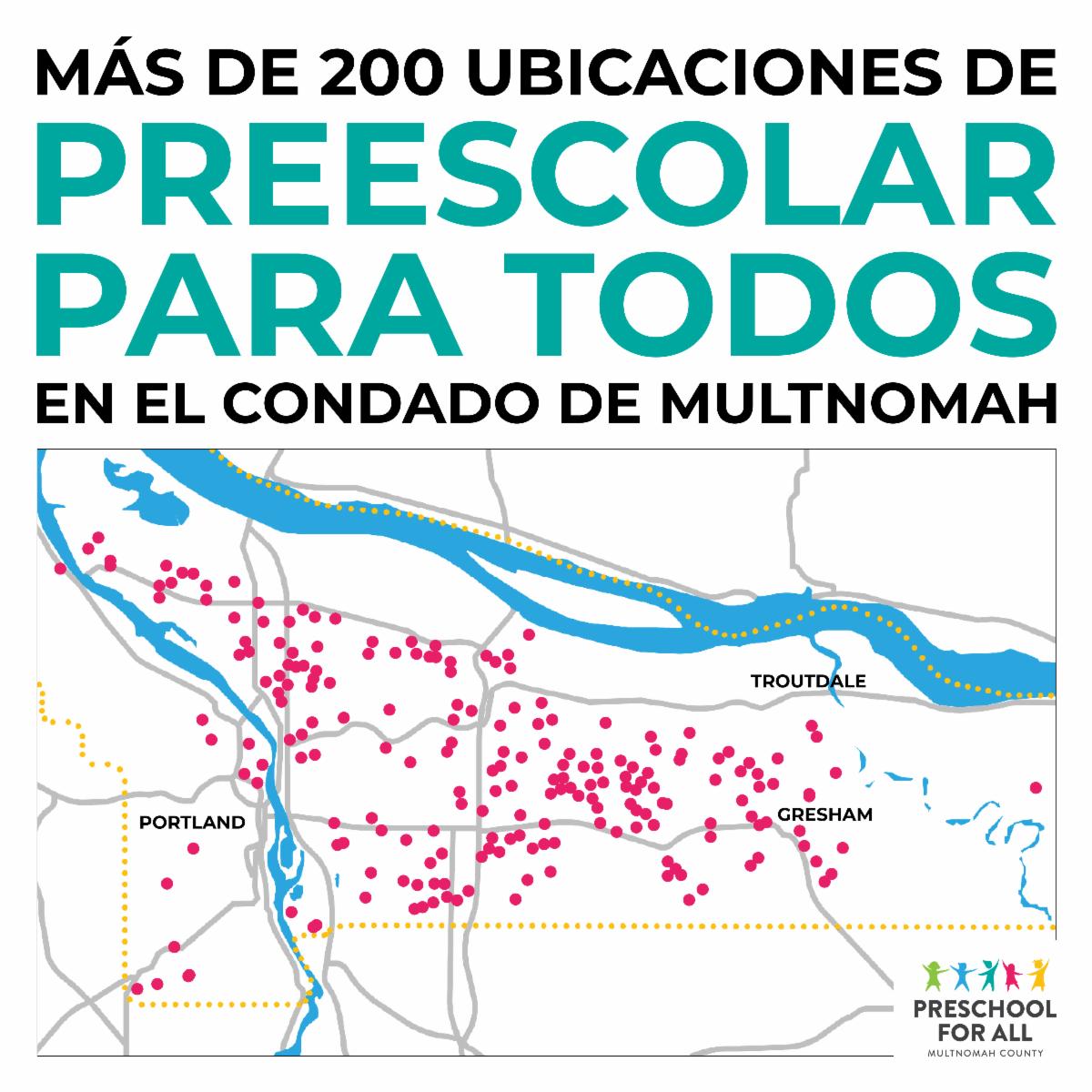 Este año, más de 3,800 niños asistirán a los sitios del programa Preescolar para Todos en más de 200 ubicaciones en todo el condado de Multnomah. Este es un logro notable en tan solo unos años y refleja la visión compartida y el arduo trabajo de proveedores, educadores, familias y miembros de la comunidad. Cada nuevo salón de clase representa alegría, aprendizaje y oportunidades para los niños, y un progreso continuo hacia nuestra meta de educación preescolar universal en el condado de Multnomah para el año 2030.