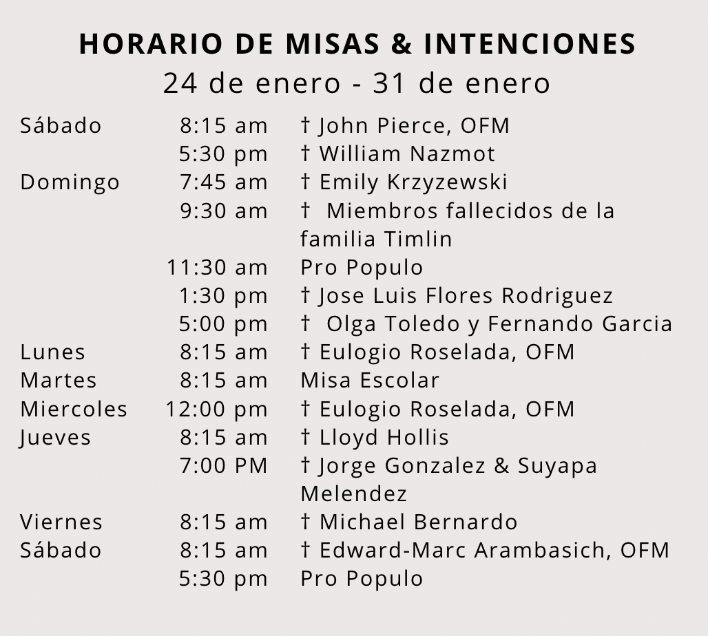Dependiendo de las condiciones de lunes, la oficina parroquial podría permanecer cerrada. Si necesita venir por cualquier motivo, llame a la oficina parroquial antes de venir para confirmar que estamos abiertos.