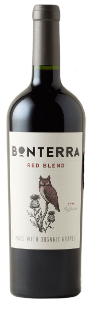 Bonterra 2022 California Red Blend | The 2022 Bonterrra Red opens with youthful, merry vibrancy and energy, boasting notes of black fruit. The black cherry and pomegranate notes linger into the midweight notes of Cardamom, Clove, Sandalwood, and Vanilla. The medium finish is dusty, sandy, and complete with notes of dark blood orange. This is a festive wine perfect for the Holidays. | |