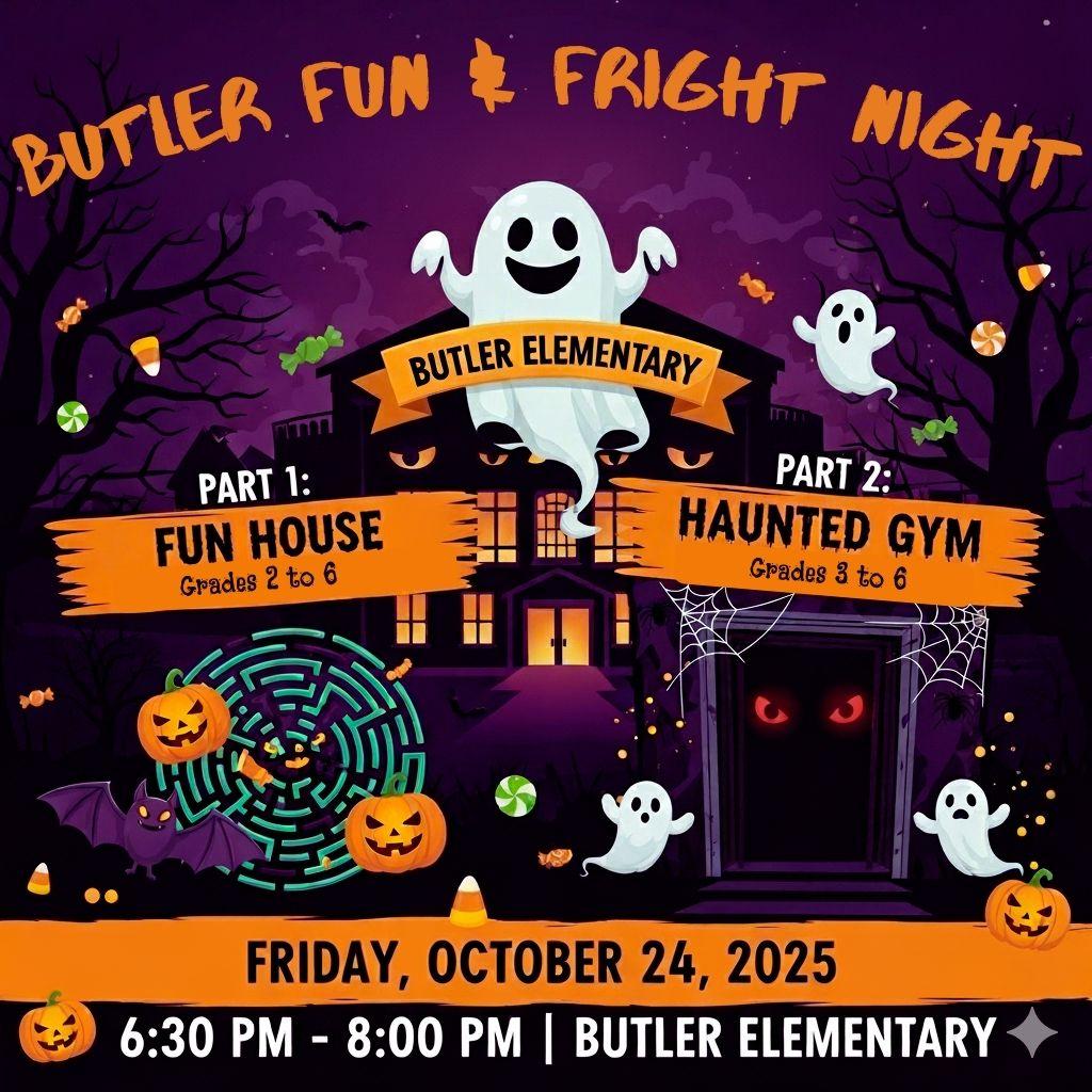 This year, our annual Haunted Gym event is getting a new twist, courtesy of our 5th and 6th graders! Get ready for the first-ever Butler Fun & Fright Night! They've created a two-part event to cater to all ages: