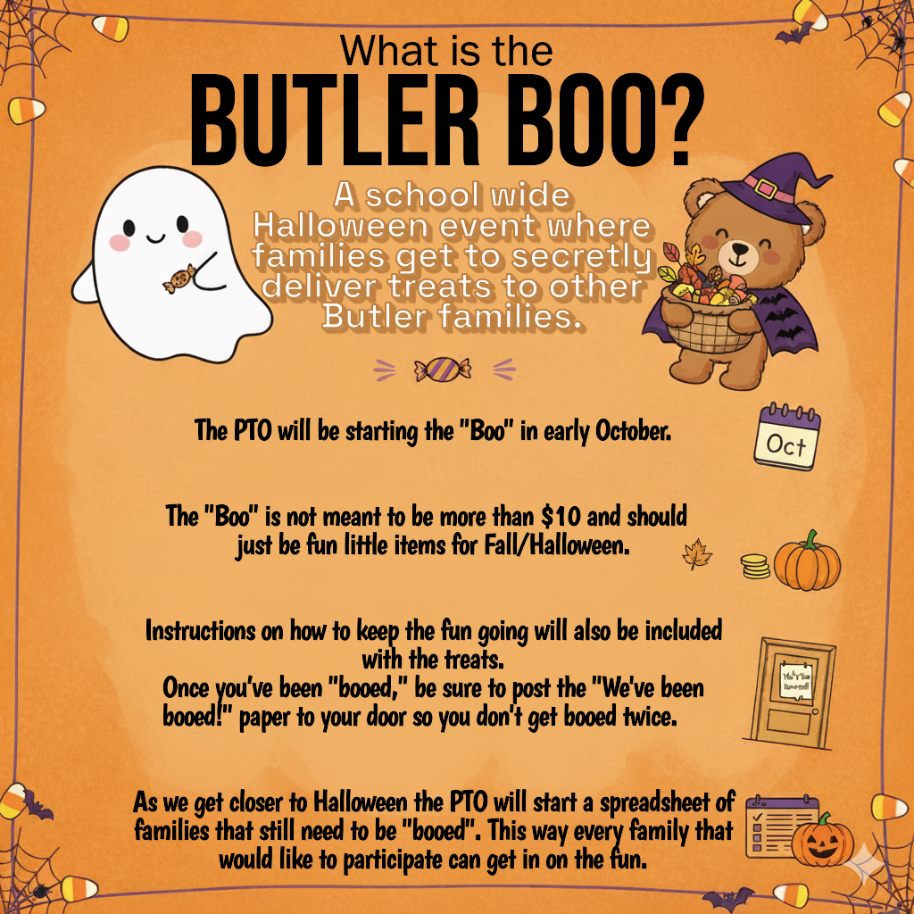 The Butler Boo has started —a schoolwide Halloween tradition where families secretly deliver treats to other Butler families.