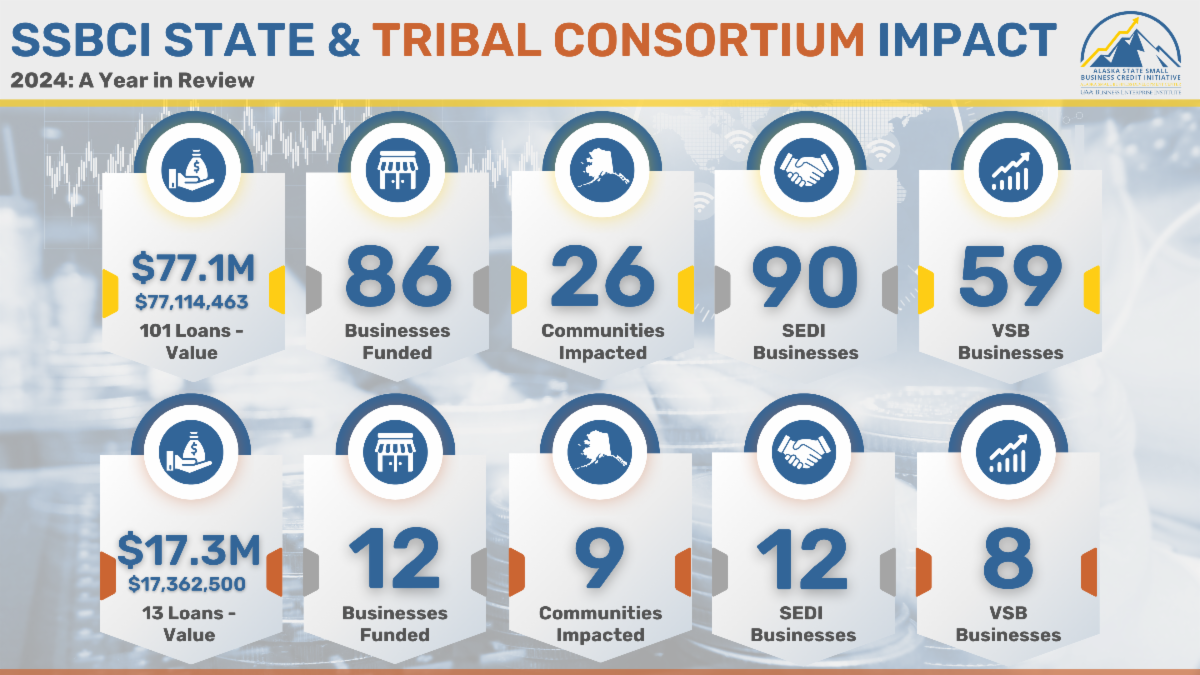 The Tribal SSBCI Consortium, launched in the fall of 2024 with participation from 125 Alaska Native tribes, began funding its first projects in October. In its initial months, the program provided $17.4 million in funding through 13 loans, supporting 12 SEDI-owned businesses, including 8 VSBs, in 9 communities. This initiative reflects a critical step toward advancing economic sovereignty for Alaska Native, tribal, and rural communities, ensuring targeted support for entrepreneurs in underserved areas.