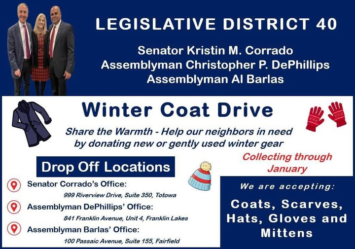 Closest Drop Off Location: Assemblyman DePhillips Office, 841 Franklin Ave, Unit 4, Franklin Lakes, NJ.