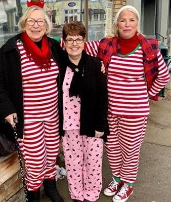AT RIGHT, Mary's of Boyne manager Theresa McGill and shoppers show off their pajamas.