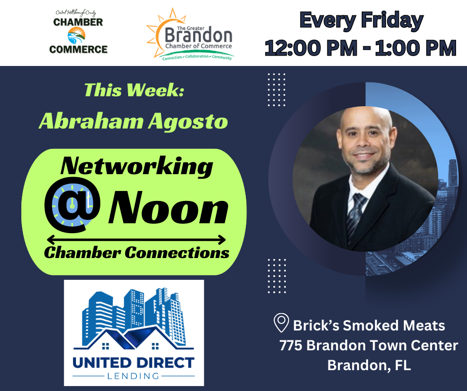 This week's speaker is Abraham Agosto with United Direct Lending (Mortgage Coach Abe!)