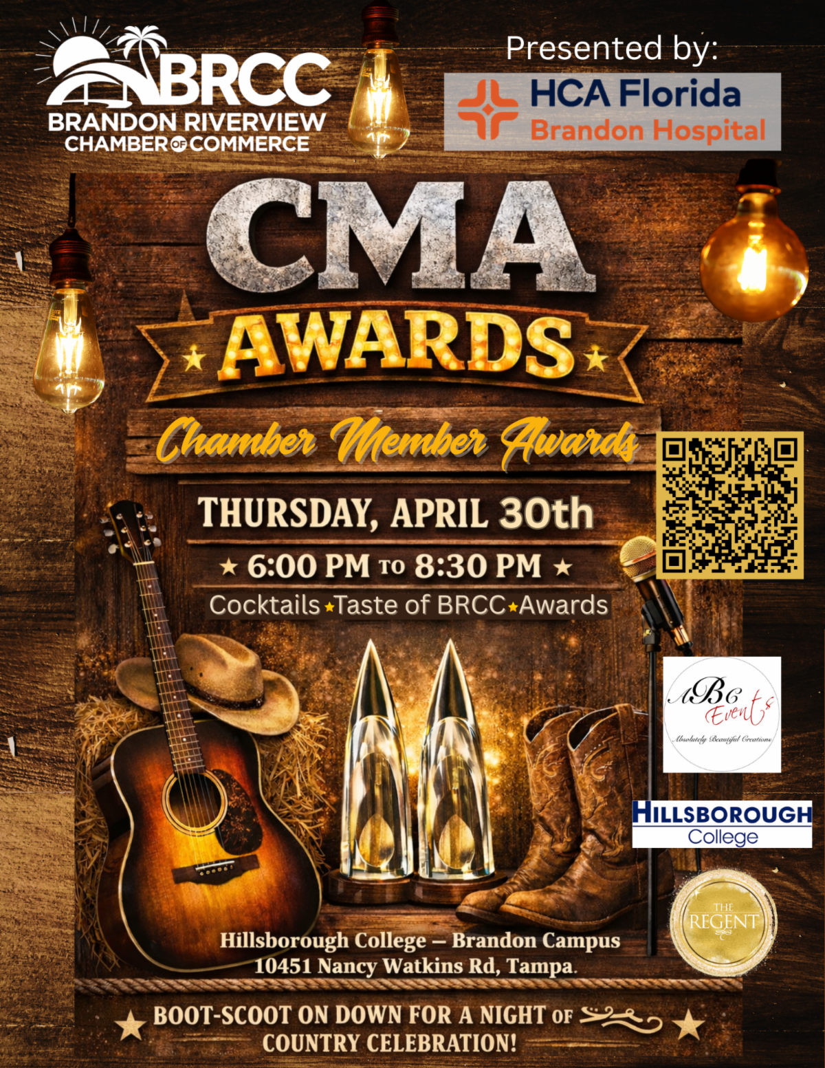 DEADLINE - APRIL 10!! Ready to show off what makes your business shine? ✨ The Brandon Riverview Chamber of Commerce invites all members to apply for our Business of the Year Award! This is your chance to highlight the impact your business has made in our community, celebrate your team’s hard work, and earn some well-deserved recognition. Winners will be revealed at the CMA (Chamber Member Awards) presented by HCA Florida Brandon Hospital on April 30, 2026, at the HC Brandon Campus. Whether you submit an application or simply come to cheer on your fellow members, this evening promises to be a fun celebration of the incredible businesses that make our Chamber community so strong. Don’t miss it—we hope to see you there! 🎉🏆