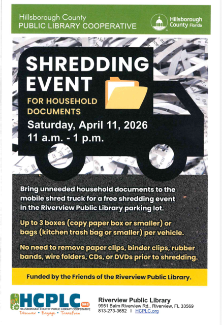 | | | April 11 - Friends of the Riverview Library SHREDDING EVENT | | | | | | | | April 18 - EYC Health & Wellness Check | | | April 22 - Estate Planning Workshop with Smylie Law Firm | | | April 22 - Disaster Resilience Convening | | | April 25 - 16th Annual Crawfish Festival | | | April 27 - May 1 - Navigator Academy Teacher Appreciation Week | | | May 2 - ECHO at the Derby | | | | | | | | May 13 - 2026 Florida SBDC as USF Annual Business Awards | | | October 9 - Angel Foundation Evening of Hope | | Oct. 15 - Art Heals the Heart - Annual Fundraiser | | Add your upcoming event to our community calendar! | | View our latest news releases. | | Hot deals and specials offered by our Members. | | See job postings by our Members. | | Searching for a business? Try our directory! | |