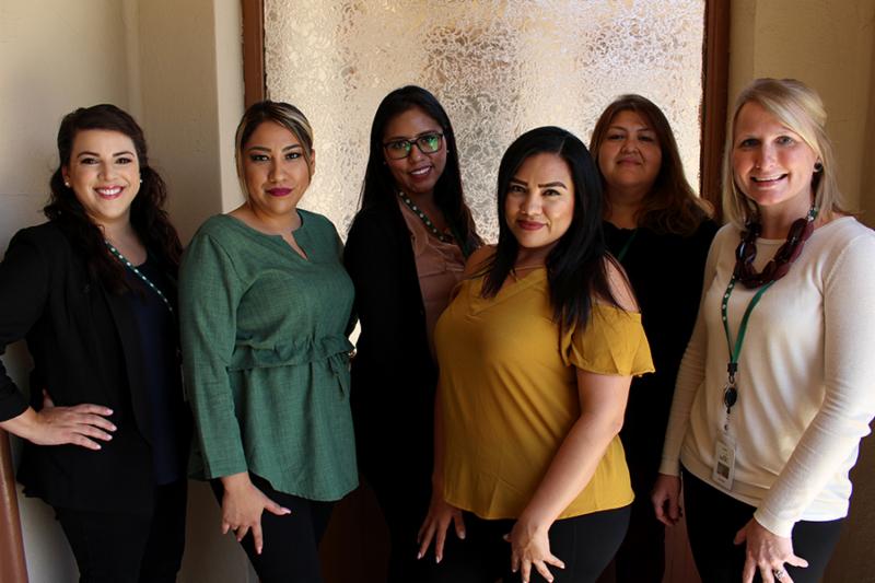 From left to right: Advocates Ariana, Zayra, Paulina, Angelica, Associate Director of Housing Sandy, and Director of Clinical Services Lisa