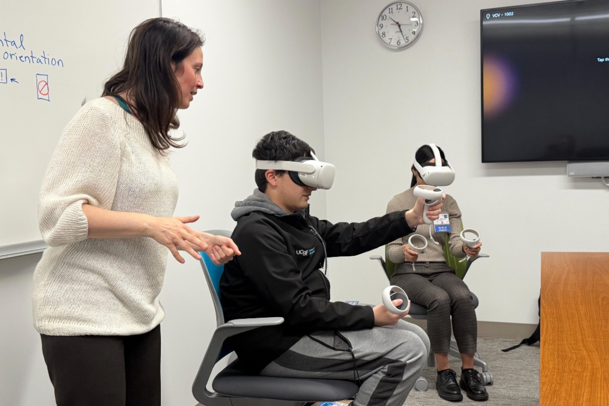 UCSF Medical Students Celebrate Match Day 2025: A Testament to Excellence, Perseverance, and Community | | On the morning of March 21, 2025, 180 graduating UCSF medical students gathered at the Koret Quad on the Mission Bay campus and at the UCSF Fresno regional campus in Fresno to celebrate Match Day—a defining milestone in their medical education journey. Surrounded by family, friends, and faculty, students opened envelopes that revealed where they will spend the next three to seven years in residency, marking the transition from medical student to physician-in-training. | | Preparing for a Paradigm Shift: The Inaugural UCSF AI & Education Symposium | | The inaugural UCSF AI & Education Symposium convened over 350 UCSF faculty, staff, and trainees to explore the transformative role of artificial intelligence (AI) in health professions education. Sponsored by a gift from the Baum family, the symposium provided a forum for collaboration and hands-on engagement with cutting-edge AI technologies. | | Virtual Reality Pelvic Exam Simulation in BMC Medical Education | | Rosalyn Plotzker, MD, MPH, guides Michael Espinoza Torres, MS3, and Denissa Widiarto, MS3, during a Virtual Reality Pelvic Exam Simulation demonstration at Mission Bay, March 2025. | | The research study “Virtual Reality or Personal Computer-Based Gynecological Pelvic Exam Simulation: Medical Student Preferences” was recently published in BMC Medical Education. The Virtual Approach to Gynecology Project was developed in collaboration with UCSF’s anatomy department and the UCSF California Prevention Training Center (CAPTC). The study, developed and led by Rosalyn Plotzker, MD, MPH, Assistant Professor of Epidemiology and Biostatistics, compared trainee experiences using virtual reality (VR) simulation to an equivalent non-immersive personal computer (PC) simulation. VR was found to be more realistic and enjoyable and was unanimously preferred. Dr. Plotzker and Stacy Young, MD, Assistant Professor of Obstetrics, Gynecology, and Reproductive Sciences, continue research on the VR pelvic exam simulation with support from the UCSF Baum Family Simulation Faculty Scholars Program. | | Bridges Curriculum Welcomes Faculty Educators | | |