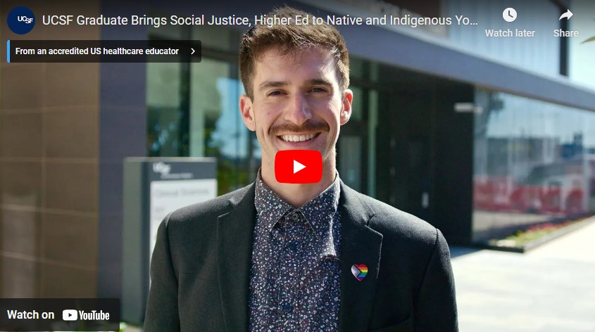 Kyle Lakatos, MD, MPP, MSc, Class of 2024, was recently recognized with a UCSF Chancellor Award for Public Service for his work inspiring a cultural shift amongst his peers and colleagues, bringing Native American and Indigenous voices from across UCSF, and building partnerships with the local community to develop a summer camp for youth to learn about social justice, decolonization, and higher education.