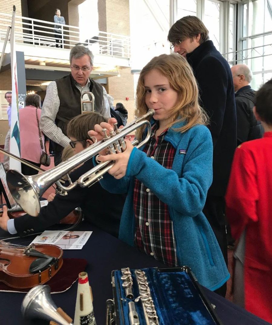Young audience members entertained themselves and everyone else with silent performances on donated instruments, playing
