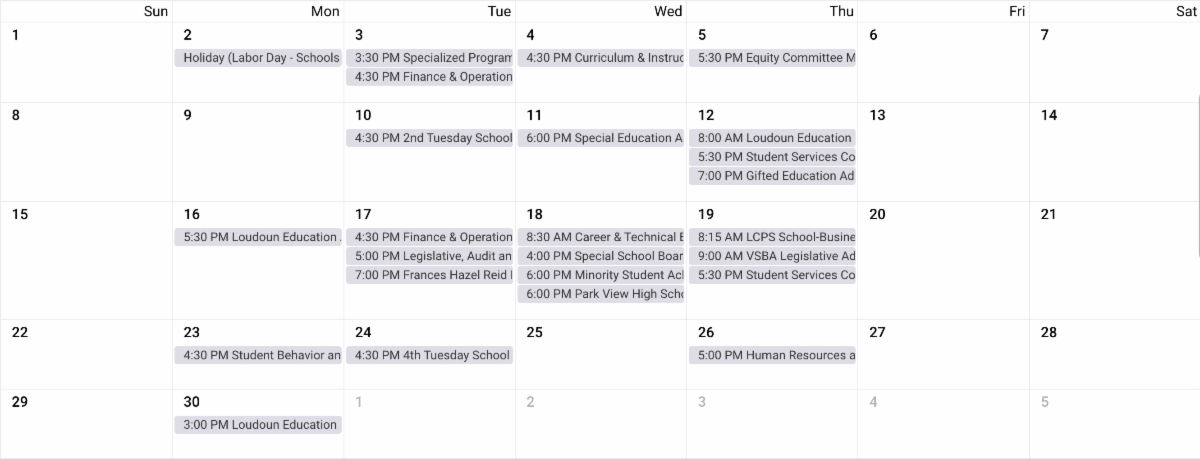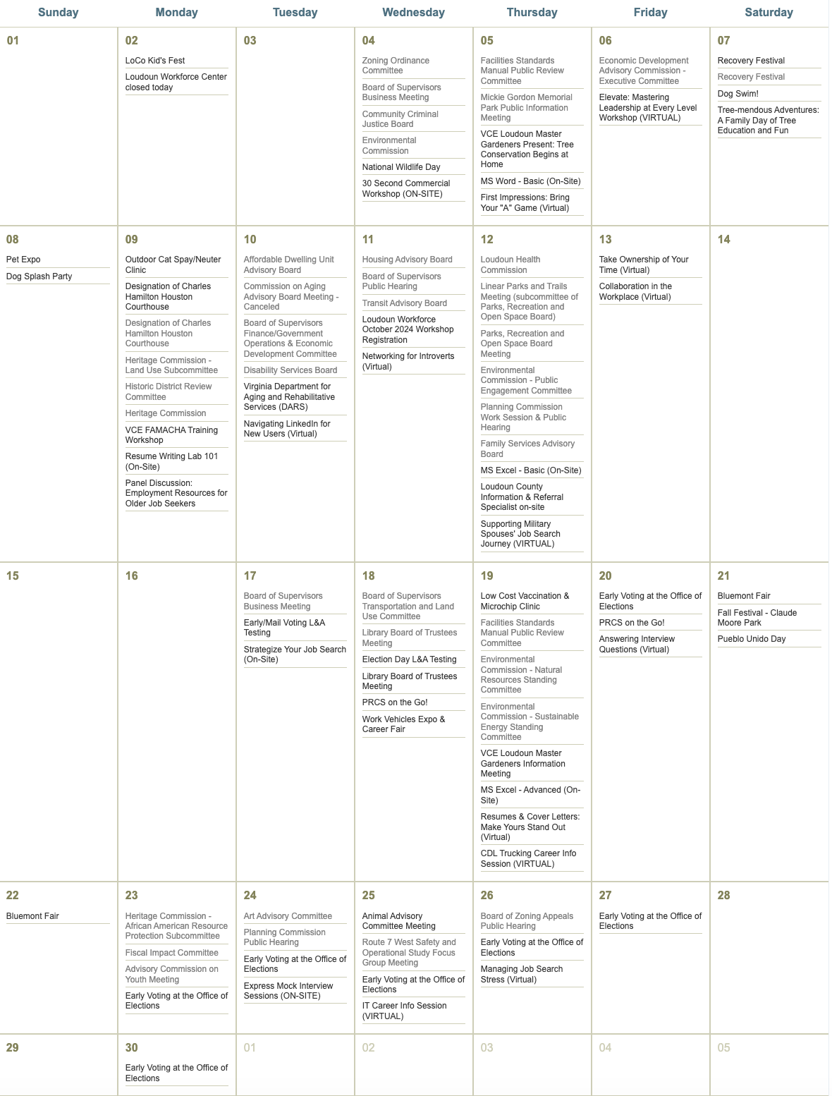 September 2024 Loudoun County Government Calendar | |
