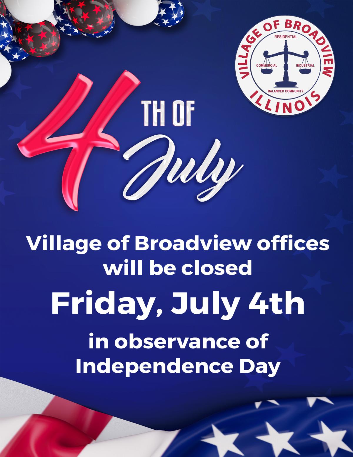As we prepare to celebrate Independence Day, the Village of Broadview reminds all residents and visitors that fireworks of any kind are strictly prohibited within Village limits.