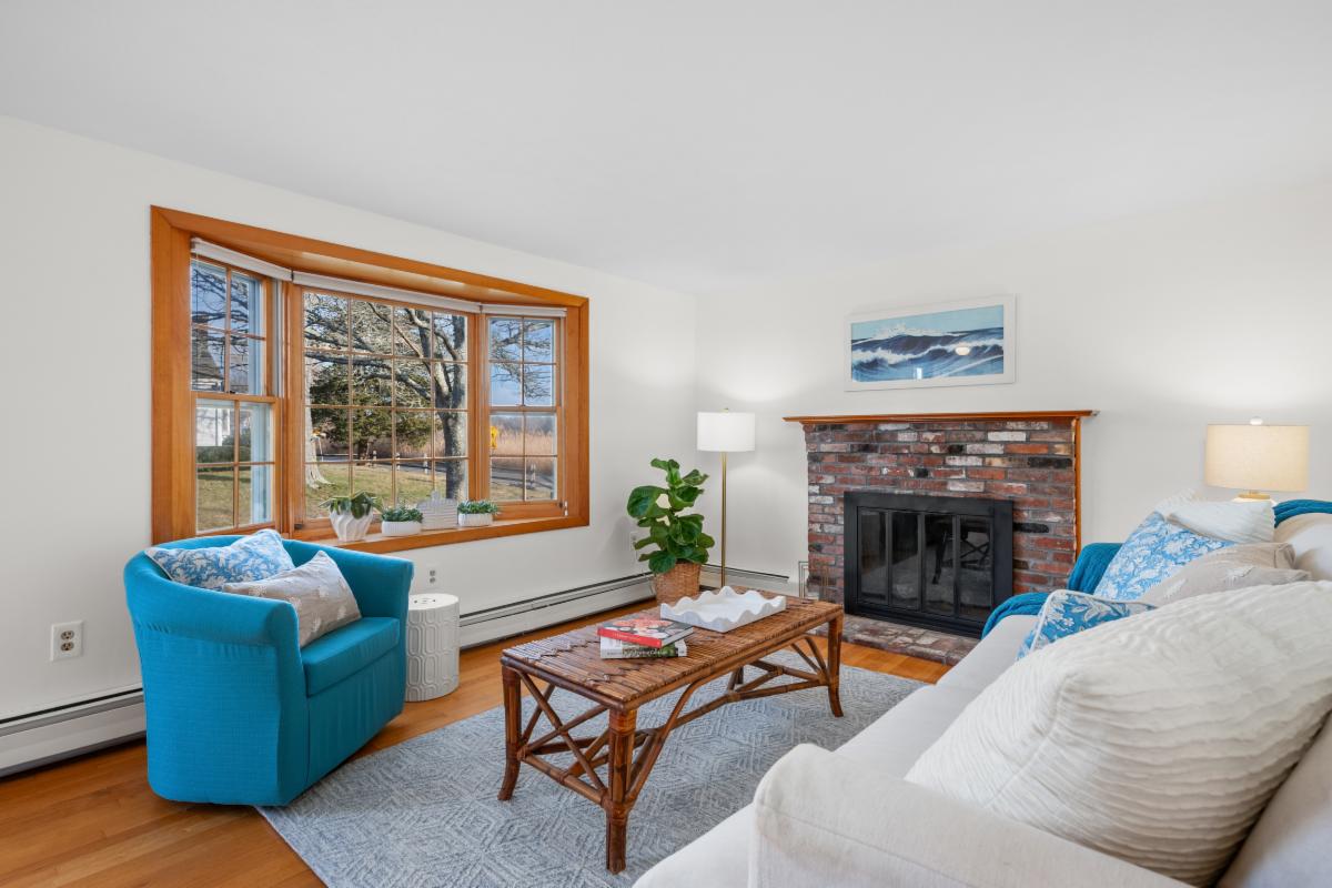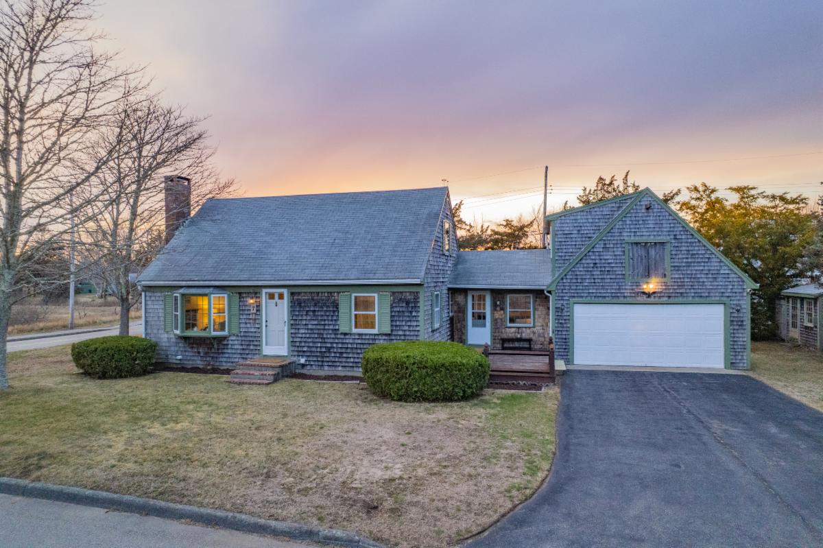 There's room for everyone in this well cared for 3 bedroom, 2 bath cape with an open country kitchen, spacious family room with cathedral ceilings, and peaceful living room with brick fireplace and bay window. Beautiful wood floors shine throughout the home. Two decks, outdoor shower, a potting shed and a large two car garage with unfinished, dormered space above accommodate every hobby as well as expansion possibilities. Private outdoor space for grilling and dining in the backyard.
