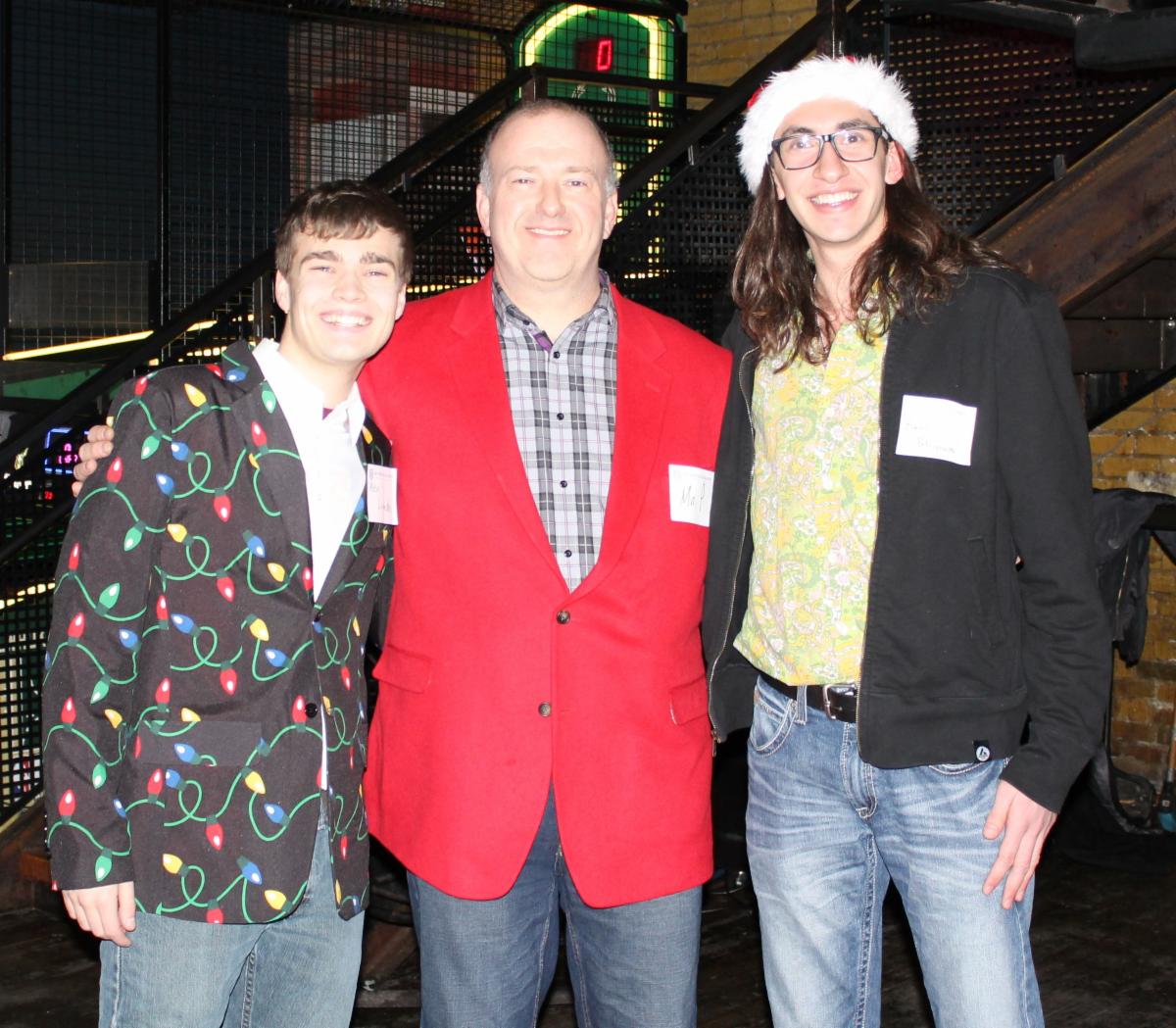 Alex Lumsden '16 (left) and Basili Petropolous '15 (right) pose for a picture with Mr. Polster at the 2017 party