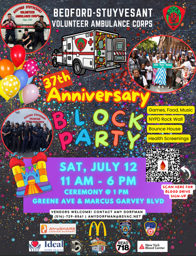 We're just two weeks away from the Bedford-Stuyvesant Volunteer Ambulance Corps' 37th Anniversary Block Party on Saturday, July 12th from 11am-6pm.