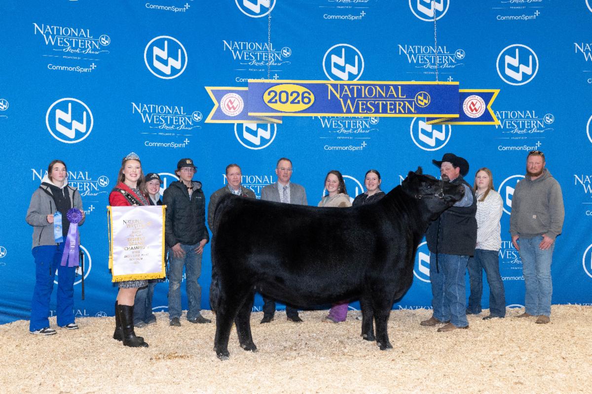Our trip to Denver for the National Western Stock Show ended on a high note with our pick of the 2025 Bear Mountain Angus Female Sale, Bear Mtn Eisa Erica 4542, earning Reserve Grand Champion PGS Heifer honors!
