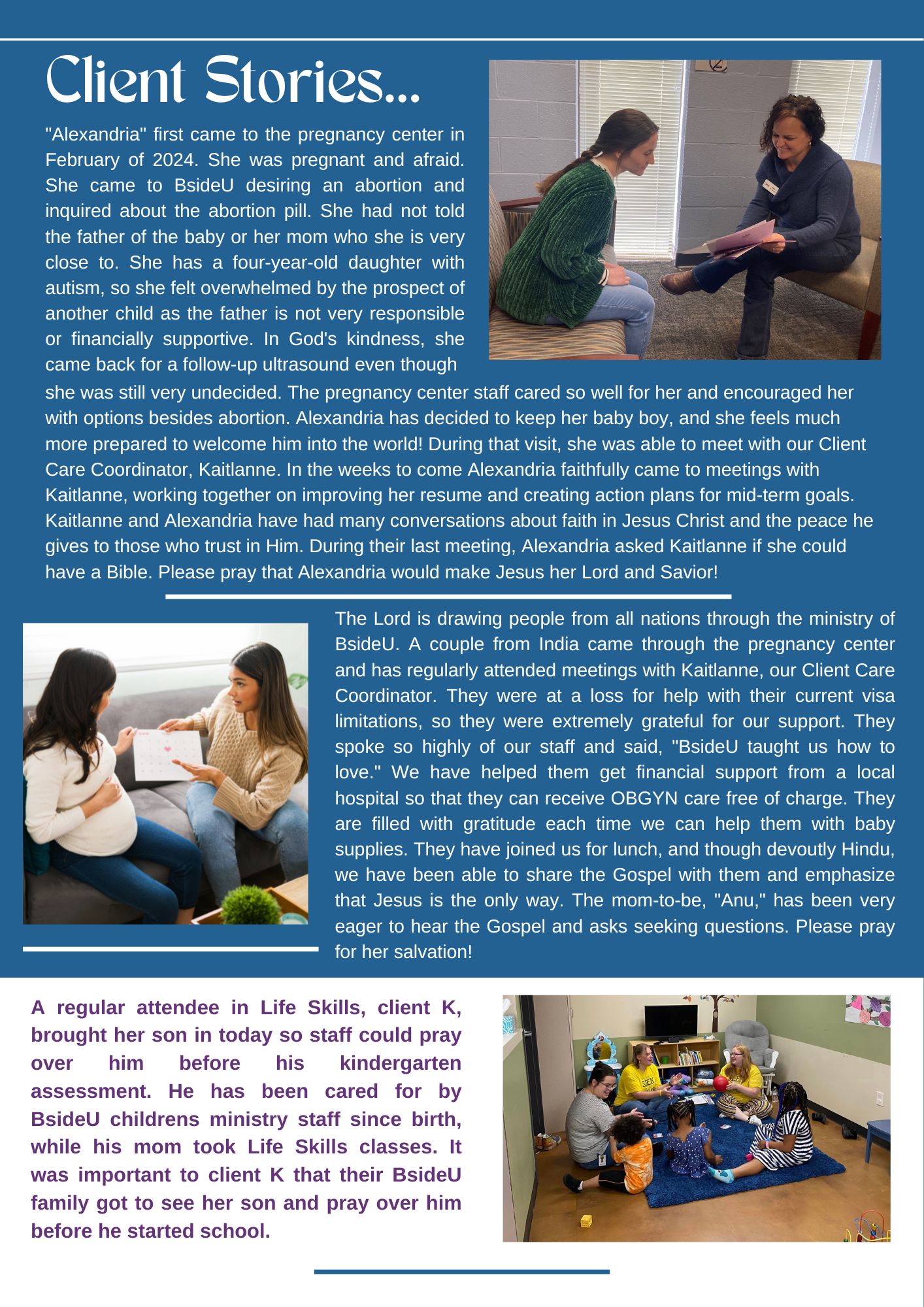 - Reaching clients with the gospel is the heart of what we do. Read a few of their stories here.