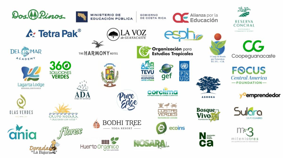 Gracias: PoliLac • NCA • Harmony Projects • Hotel Lagarta Lodge • Ferretería Grupo Nosara • Viveros Tropicales • Maquinaria Chavo • Maquinaria Linda Bristol • Nosara Green Restorative Landscaping • Municipalidad de Nicoya • Bomberos de Nosara • Astratun • Nosara Recicla • Fundación El Colono • Juntas de Educación • Directoras • Padres de familia
