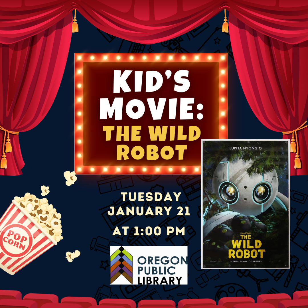 Watch the movie adaption of the wildly popular children' book series Wild Robot. Bring a comfy blanket! Popcorn will be served!