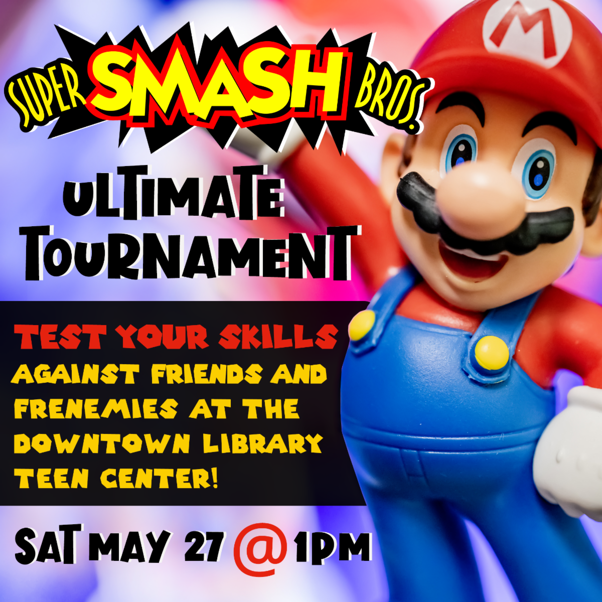 Teens in grades 6-12 can test their skills against friends and frenemies in this ultimate tournament! We’ll be using our Nintendo Switch, but you can bring your own Joy-cons and Pro Controllers.