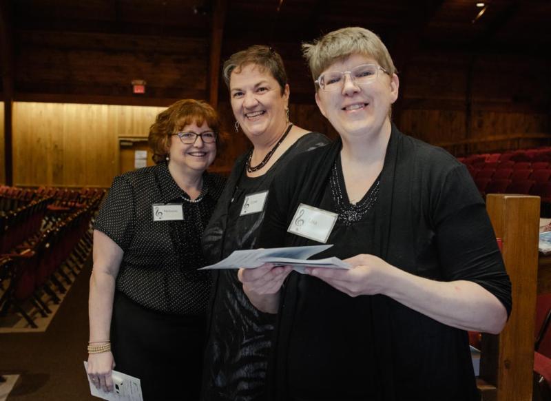 Pictured: (left) The ME2/Orchestra and (right) ushers Melanie, Lynn and Lisa.