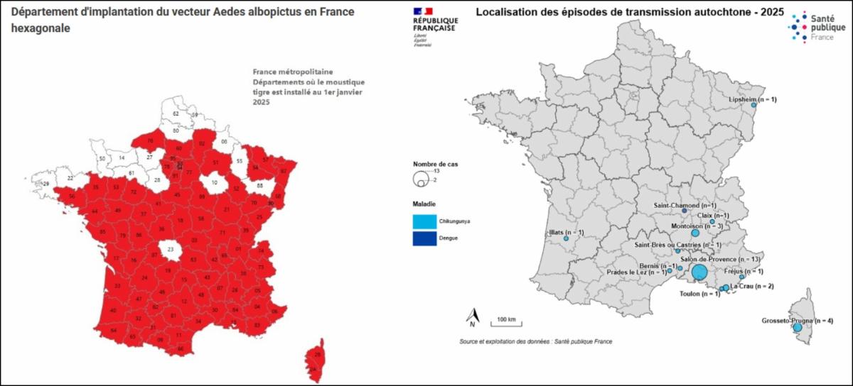 Au 16 juillet, treize épisodes (31 cas) de transmission autochtone ont ainsi été identifiés en France hexagonale :