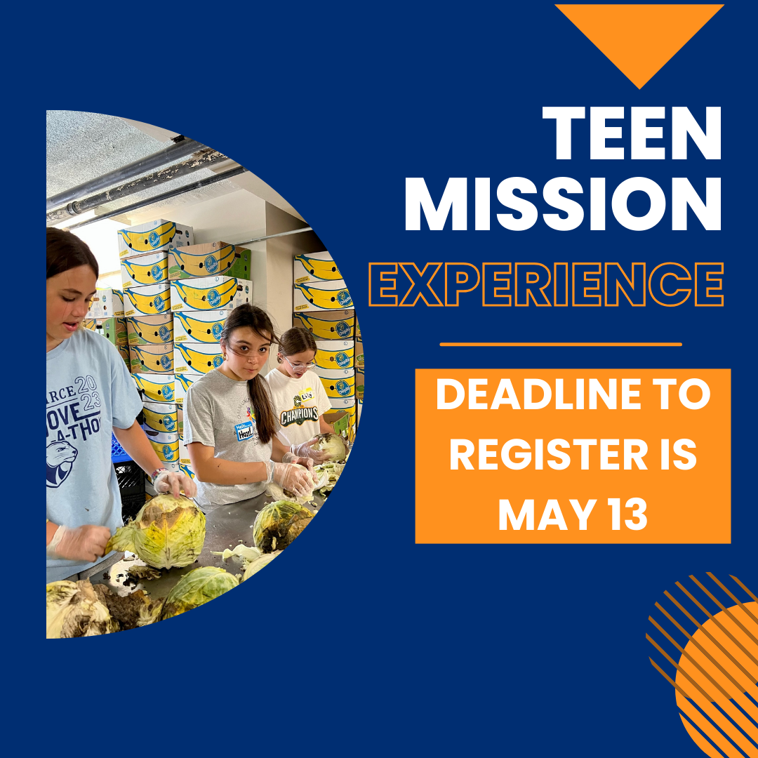 Deadline for our Summertime Youth Mission Experience is Tuesday, May 13