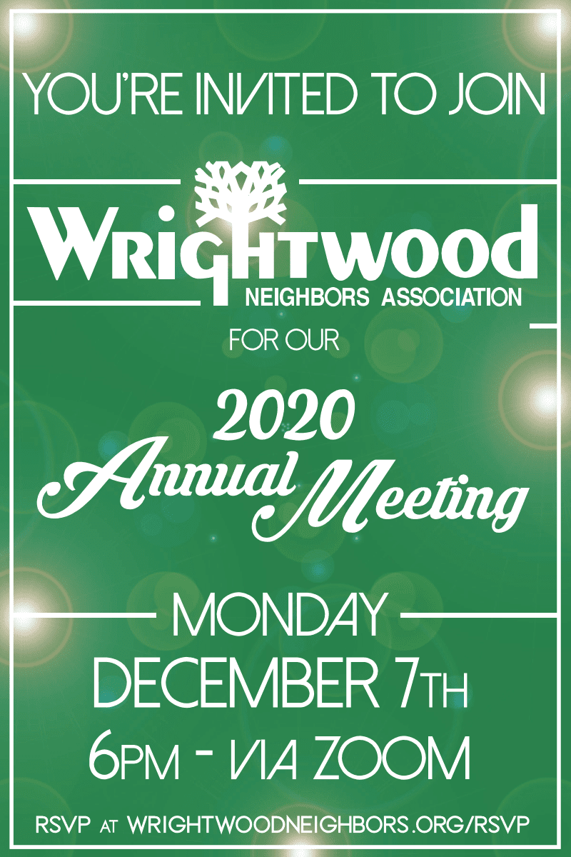 Join Wrightwood Neighbors Association on Zoom for their annual meeting on December 7 at 6 PM. RSVP here.
