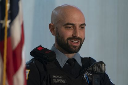 Last Monday, off duty 19th District Chicago police officer John Hanlon saw black smoke coming from a building on the 500 block of North Avenue.