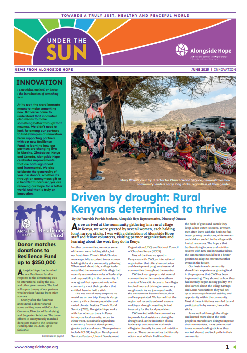 | | | Watch for the latest issue of Under the Sun in your June Anglican Journal | This issue is themed around innovation from our new name to the work of our partners, and the impact on our donors. It is also available for download. | |