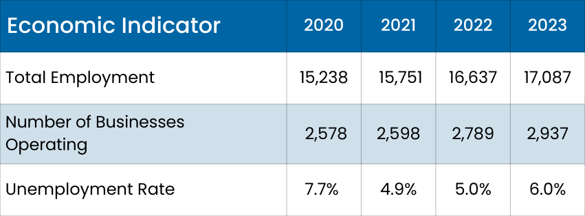 The Town’s 2023 Economic Development and Culture (EDC) Annual Report is now available. The report evaluates the community’s economic vitality and includes key economic indicators such as the number of businesses and jobs. These statistics are complemented by a review of initiatives and events that were supported by the EDC office. | Total employment grew by 3% in 2023, surpassing the province’s growth rate by 1% and there was a 5% increase in the number of businesses. Development of industrial and commercial properties represented the majority of the Town's construction value last year and the average selling prices of residential properties declined. Find all of the details and much more by reading the full report online or contact us for information to support your specific business needs. | |