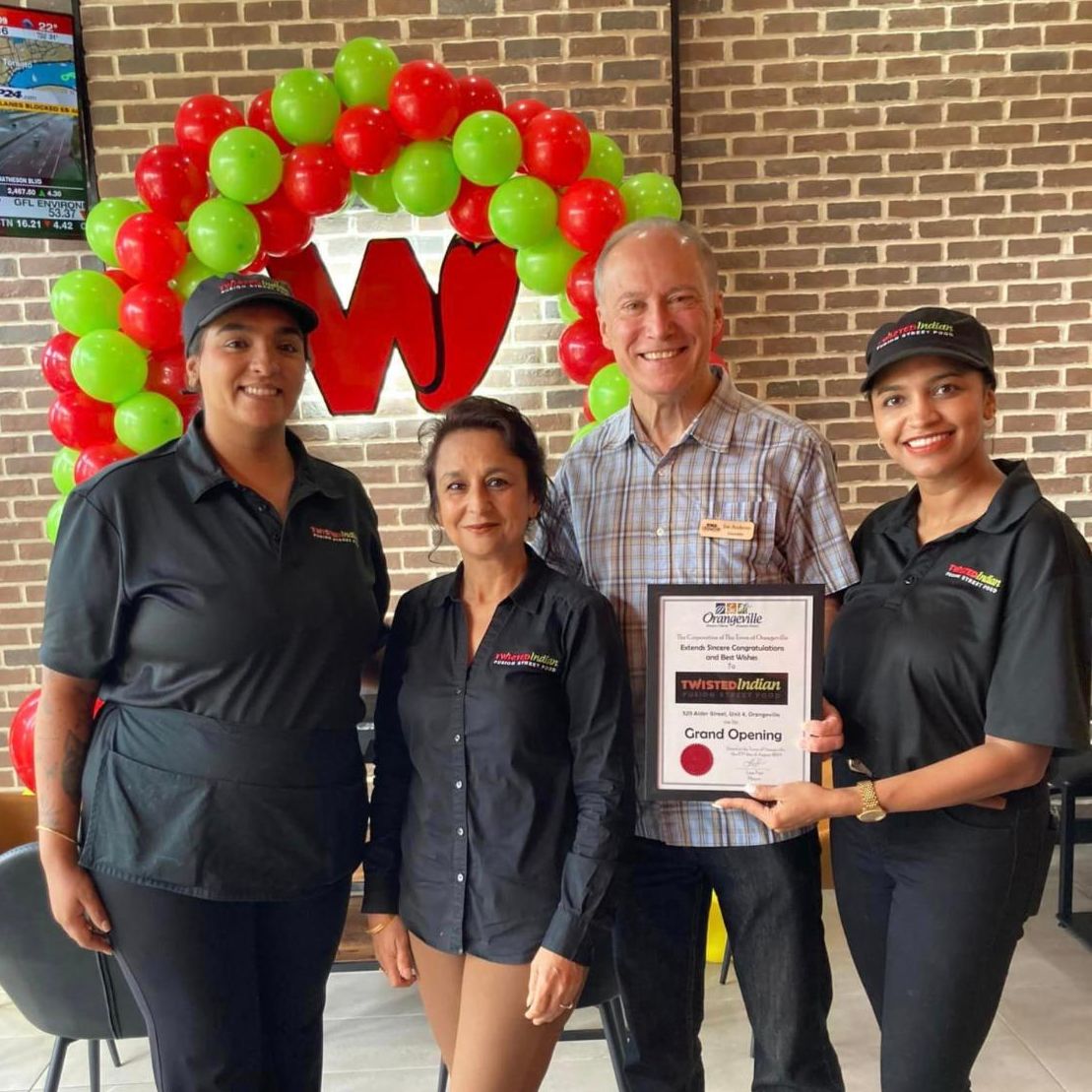 Councillor Joe Andrews attended the Grand Opening of The Twisted Indian last week and presented them with a congratulatory certificate.