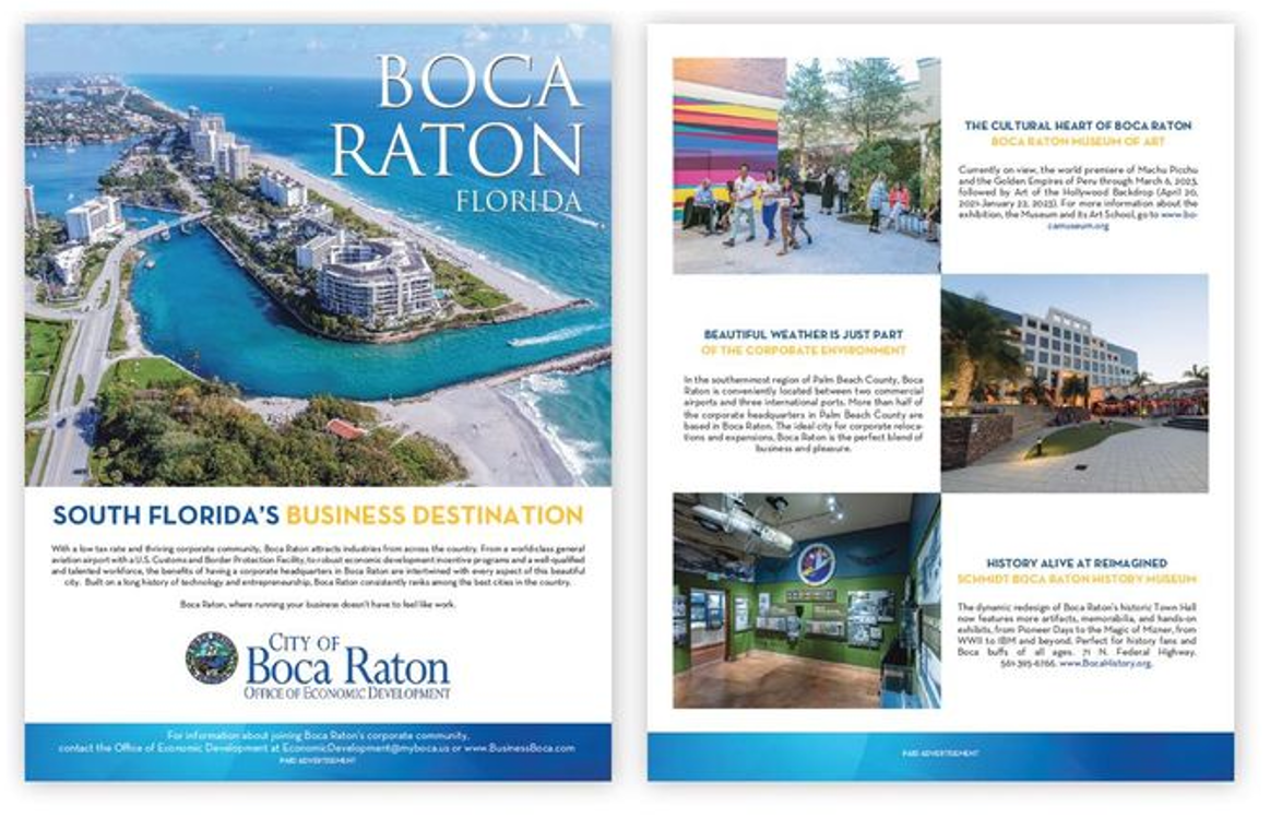 As part of our ongoing marketing initiatives, we continue to create informational pieces designed to highlight the business attributes of the City of Boca Raton.
