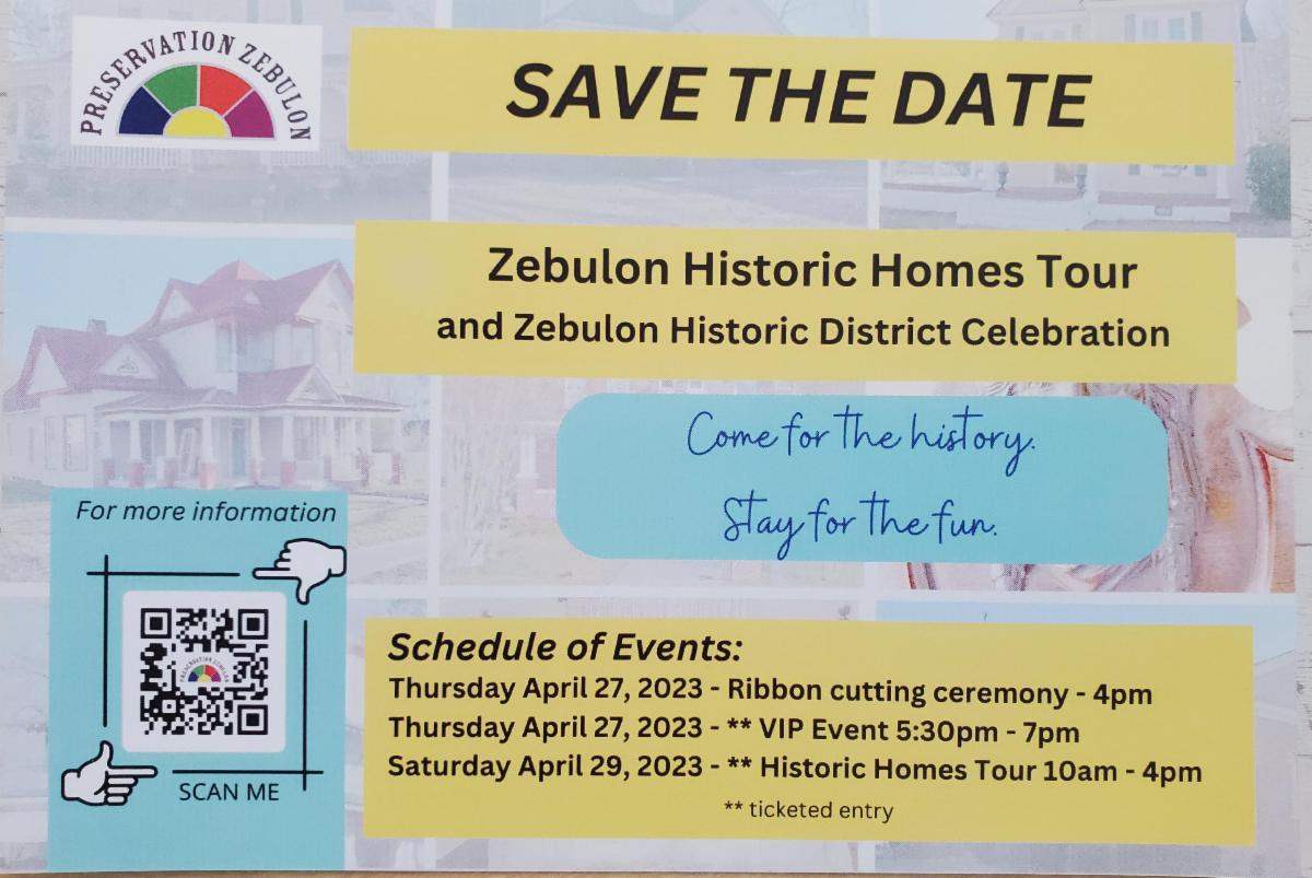 Join community members, regional dignitaries, Preservation Zebulon, and the Zebulon Chamber at 4 PM to celebrate the official presentation of Zebulon's first historic District. Hosted at the Strickland-Temple House (c 1915), 104 E Sycamore St. More info