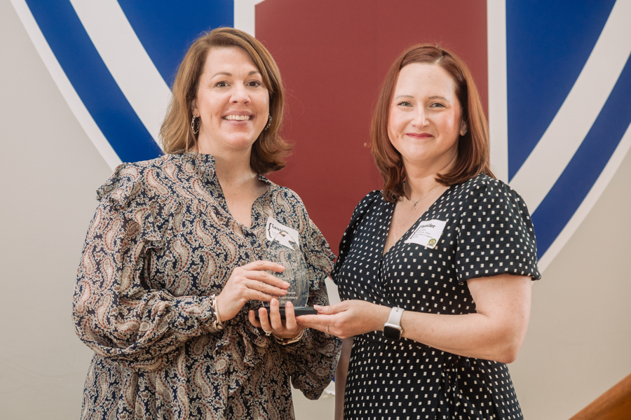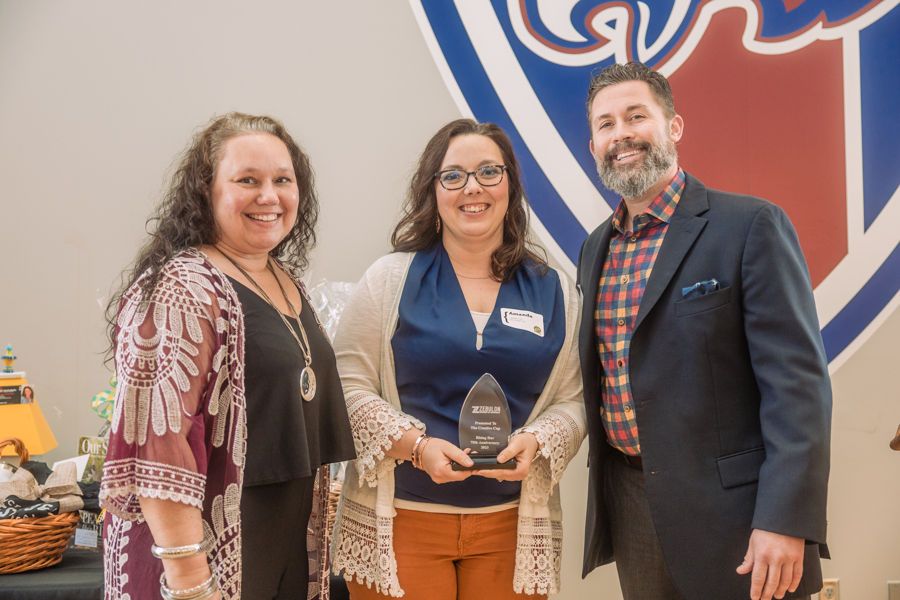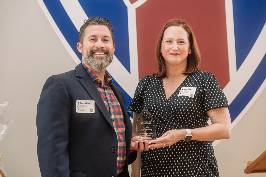 During the Zebulon Chamber’s 75th Anniversary Luncheon, Jennifer Williams, Chamber Board Chair, presented the Most Influential Business Award to Brandon McCraney from Olde Raleigh Distillery.