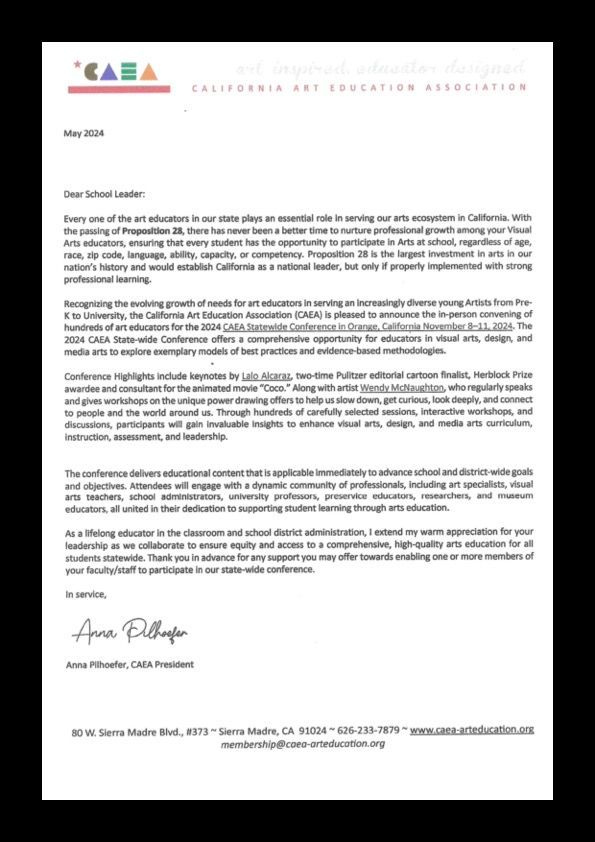 Questions? Please email Sydney Krieck, Finance and Operations Manager, at skrieck@arteducators.org
