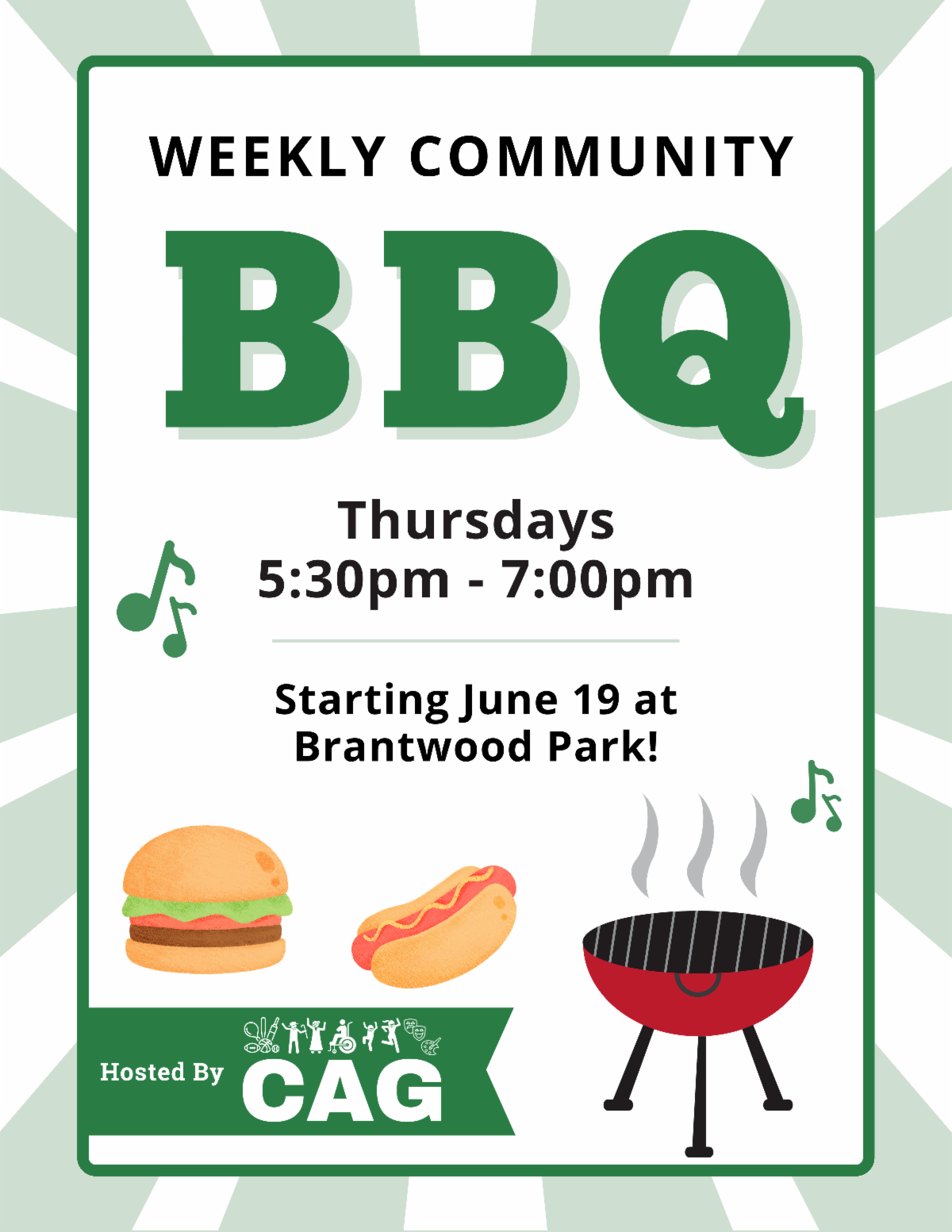 CAG's Weekly Community BBQs start next Thursday June 19 at Brantwood Park! Join your neighbours for fun, food, music and great conversations in Old Ottawa East.
