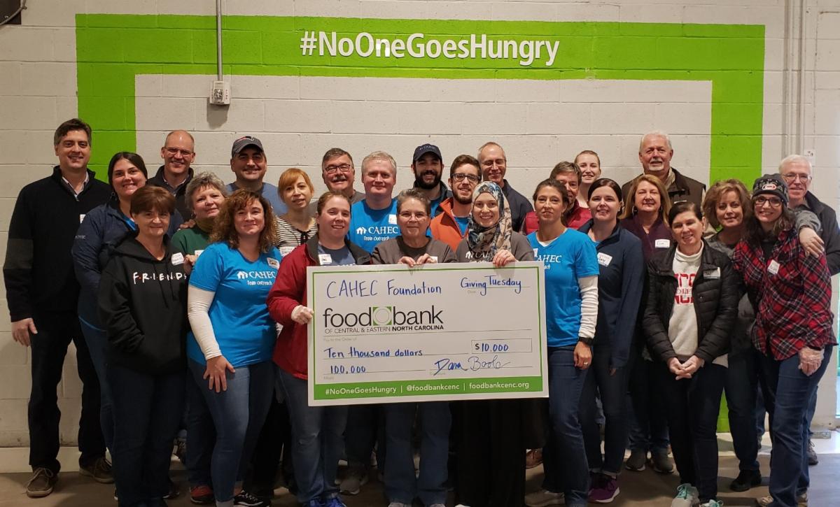The CAHEC Foundation recently partnered with the Food Bank of Central & Eastern North Carolina on their Giving Tuesday campaign. As a corporate sponsor of this event, our $10,000 was used to triple match all donations made to the Food Bank on Giving Tuesday, which occurs the Tuesday after Thanksgiving. In total, the Food Bank raised enough money to distribute 1,605,950 meals to the community. Jenna Temple, Manager of Corporate Partnerships for the Food Bank, explained why campaigns like this are so important. "This year, the Food Bank raised more on Giving Tuesday than any other day in its history. We know the community is inspired to give when they learn their donation will be double- or triple-matched by other generous donors. Together, we make it possible to achieve this success, all of which allows us to continue supporting the communities we serve."