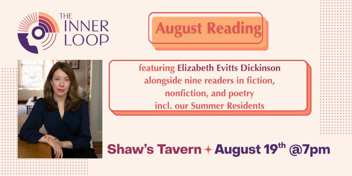 Join them at Shaw's Tavern on August 19th at 7:00 pm for an incredible reading featuring Elizabeth Evitts Dickinson reading alongside nine local writers in fiction, nonficiton, and poetry, including their Summer Residents!