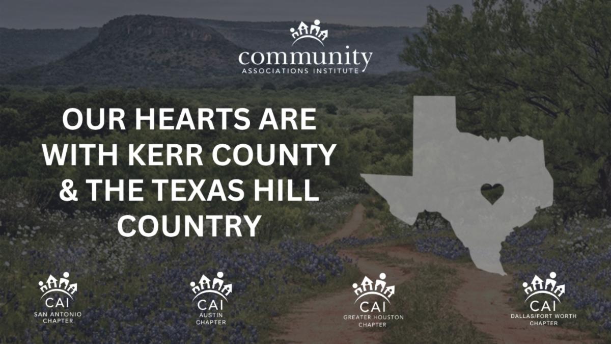 In response, the Boards of the CAI Austin, Dallas, Houston, and San Antonio Chapters met on July 7, 2025, to develop a coordinated, statewide effort to support those in need. We are committed to coming together as a CAI family to provide immediate and long-term assistance.