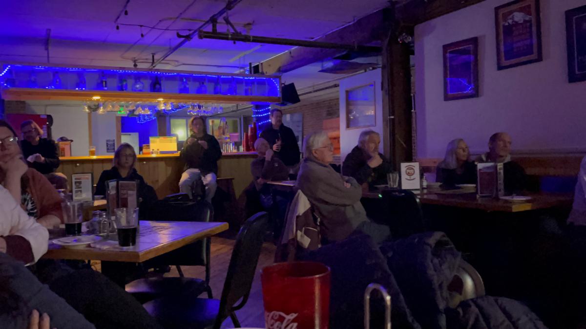 The atmosphere at Portneuf Valley Brewing was cozy and friendly. Tucked in at a cozy table against an old red brick wall surrounded by faculty, students, and community members, I enjoyed the free food including a tangy, spiced artichoke salad, hummus, bread that tasted homemade, and pizzas, and a drink from the bar.