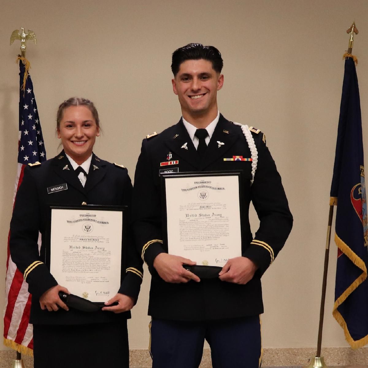 On Friday, December 16, the ISU ROTC commissioned two 2LTs into the Idaho Army National Guard Medical Services branch. 2LT McKenzie Messick and 2LT Mehdin Siocic both graduated from the School of Nursing and will continue to serve in the Idaho Army National Guard. |