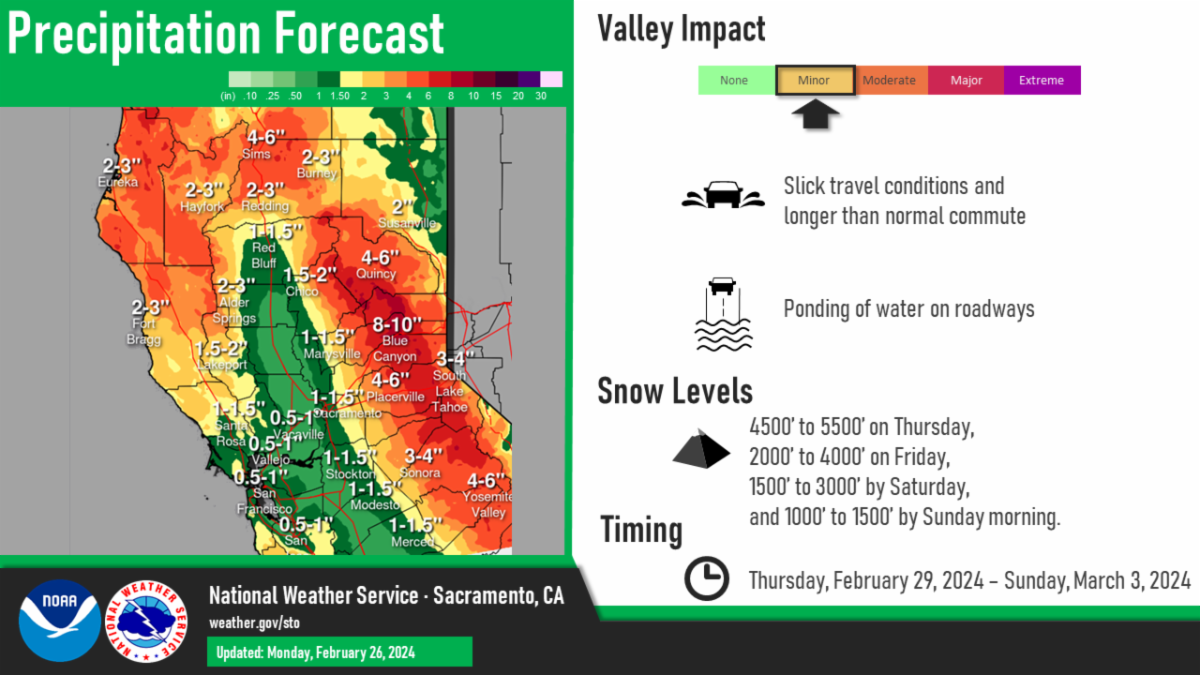 MARYSVILLE – Caltrans is alerting motorists about a major winter storm in the Sacramento Valley and the Sierra Nevada that forecasters say will create near impossible travel conditions for the end of the week and beginning of March.