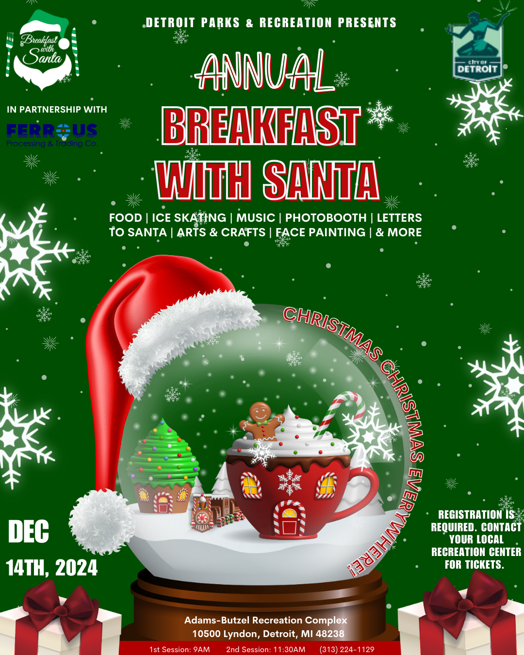 Join Detroit Parks and Recs for their Annual Breakfast with Santa on December 14th at the Adams-Butzel Recreation Complex. There will be food, ice skating, music, a photobooth, arts and crafts, and more.