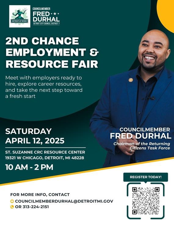 | | For more information about the Housing Resource HelpLine, go to the City of Detroit's website. | | If you or someone you know is looking for a second chance and a new path, then don't miss these events. Register today using the QR codes and links or reach out for more information at councilmemberdurhal@detroitmi.gov or call 313-224-2151. | | |