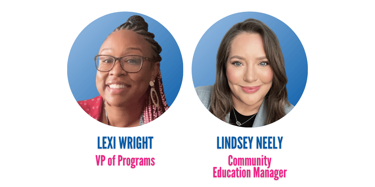 We're thrilled to congratulate Lexi and Lindsey on their recent promotions! Lexi, our new Vice President of Programs, was our prior Community Education Manager. In her new role, Lexi will supervise the entire clinical team, including our therapists, interns, and home visiting program. Lindsey was most recently one of our Community Education Interns in addition to her role as Program Support Specialist. She's our new Community Education Manager and will work closely with Lily to educate our community, both children and adults, as well as maintaining a presence at the multitude of community events around the metro. | |